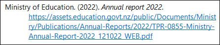 | Resource | Reference Type | Fields to fill | Citation and Reference Example |